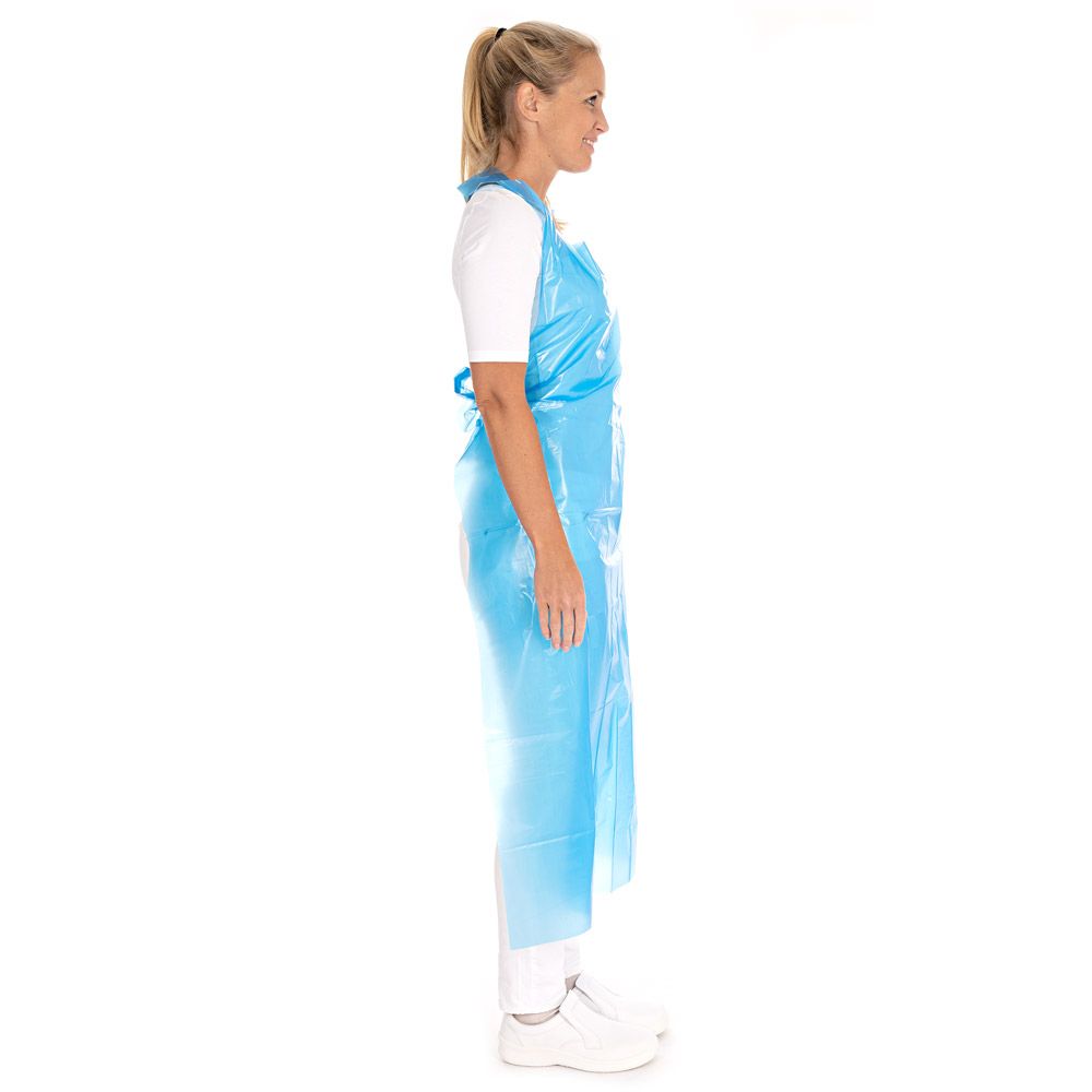 Nämä kertakäyttöesiliinat ovat elintarvikekäyttöön soveltuvia ja edullisia. Ne on valmistettu kevyestä LDPE-muovista, jonka paksuus on noin 33 my. LDPE on mukavaa käyttää, eikä se rapise kävellessä. Esiliinoissa on kohokuvioitu pinta, ja ne sopivat erinomaisesti elintarviketeollisuuteen, ravintoloihin sekä teollisuuteen. PE-esiliinat on pakattu pinoihin, mikä tekee niiden säilytyksestä erityisen tilaa säästävää. Helpota henkilökuntasi käyttöä valitsemalla seinäteline pinotuille esiliinoille. Esiliina sidotaan helposti selästä kahdella nauhalla.